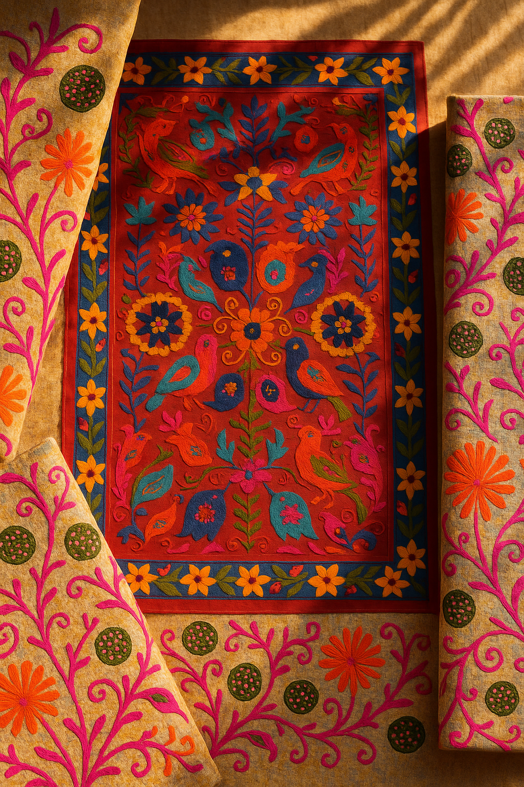 Prachtige hand bestempelde tafelkleden en bijbehorende servetten van 100% katoen.