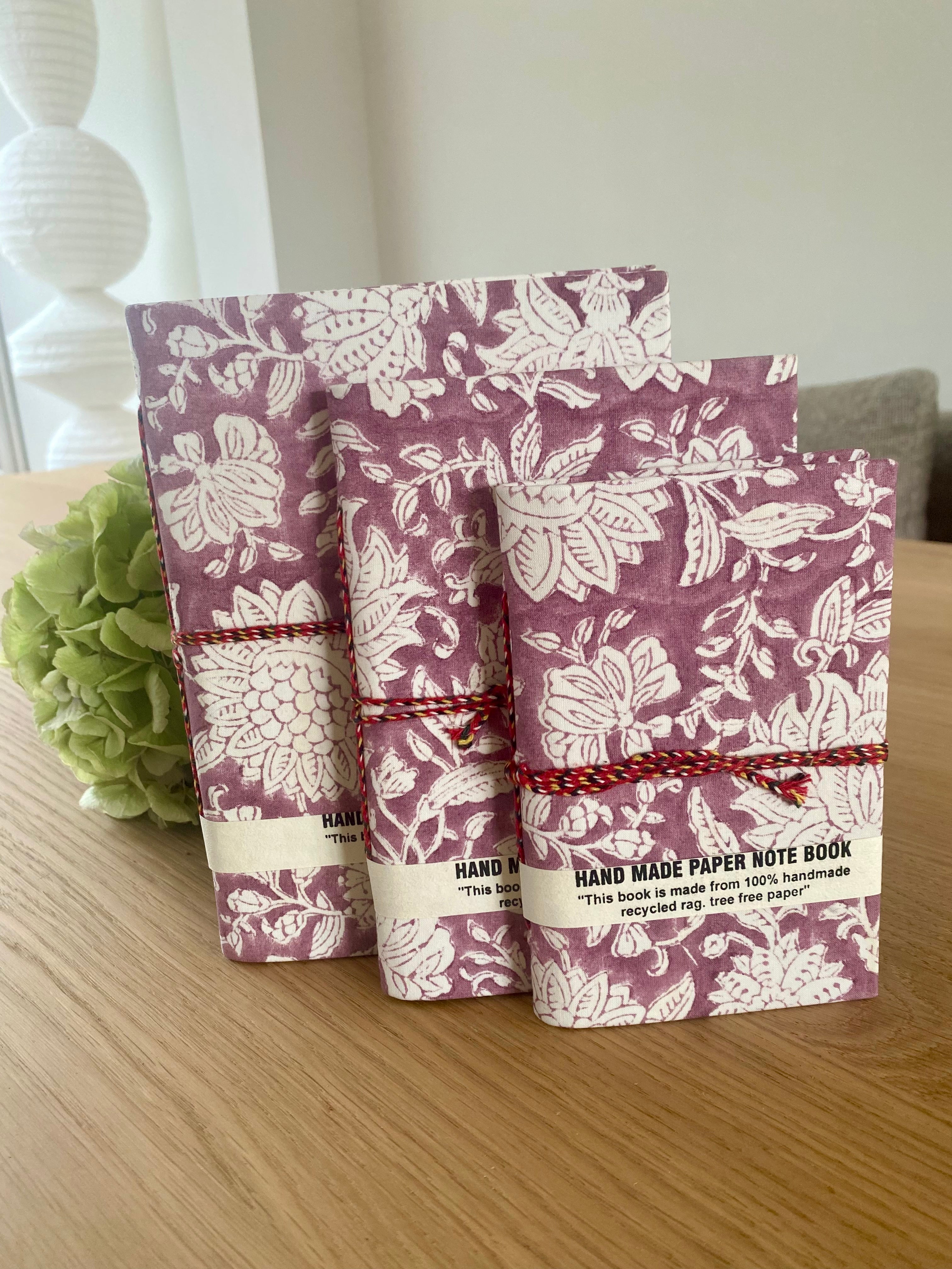 Handbestempeld katoen. Gerecycled papier. Een bewuste keuze! Een cadeau voor de feestdagen. Voor jezelf of de ander.