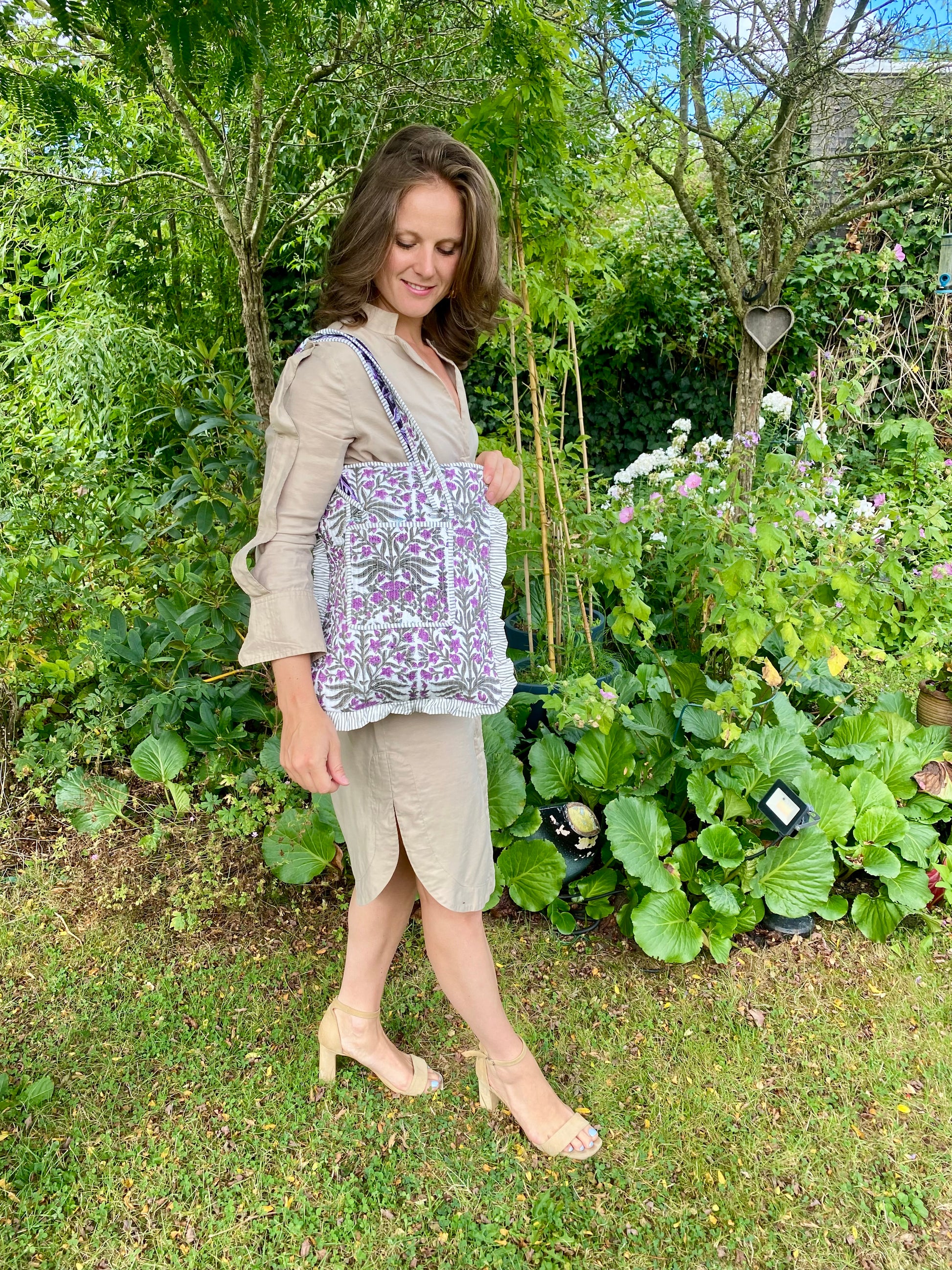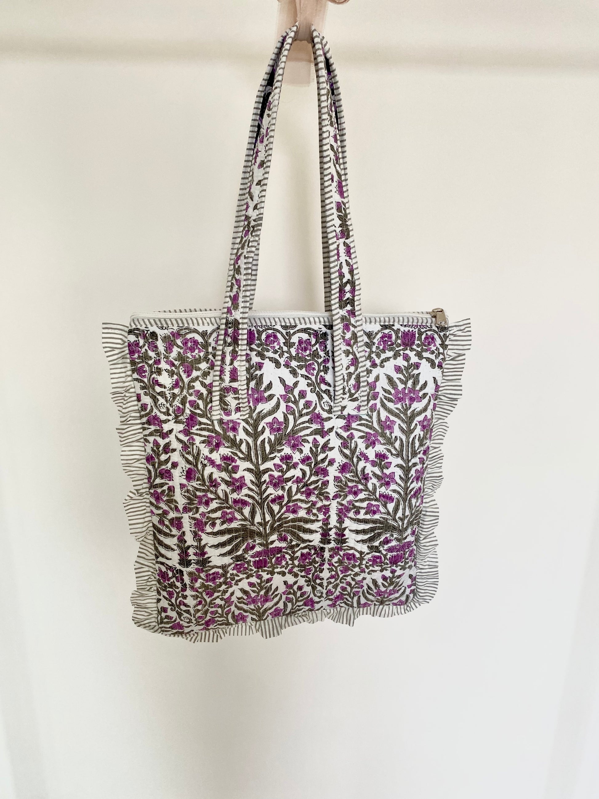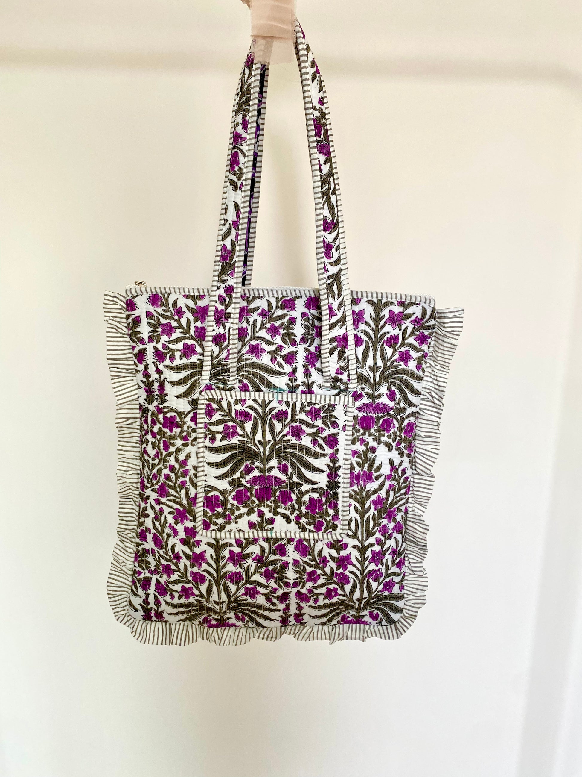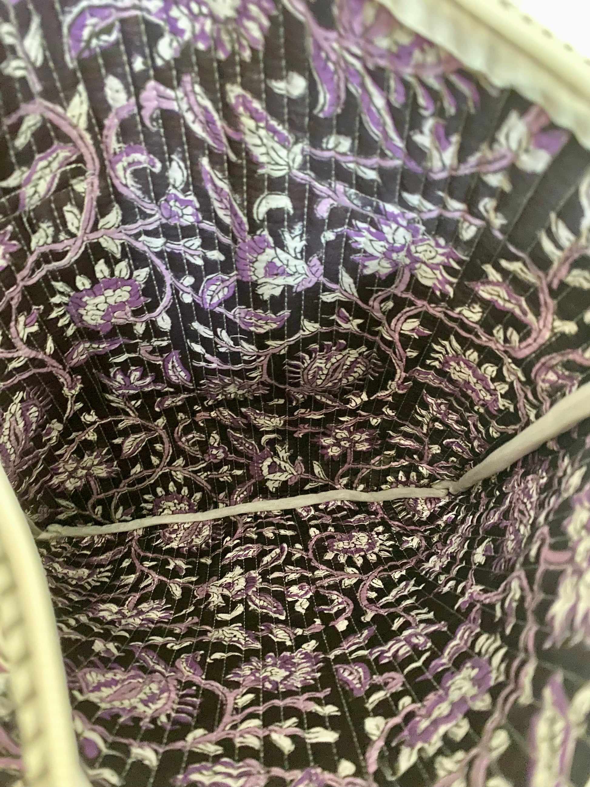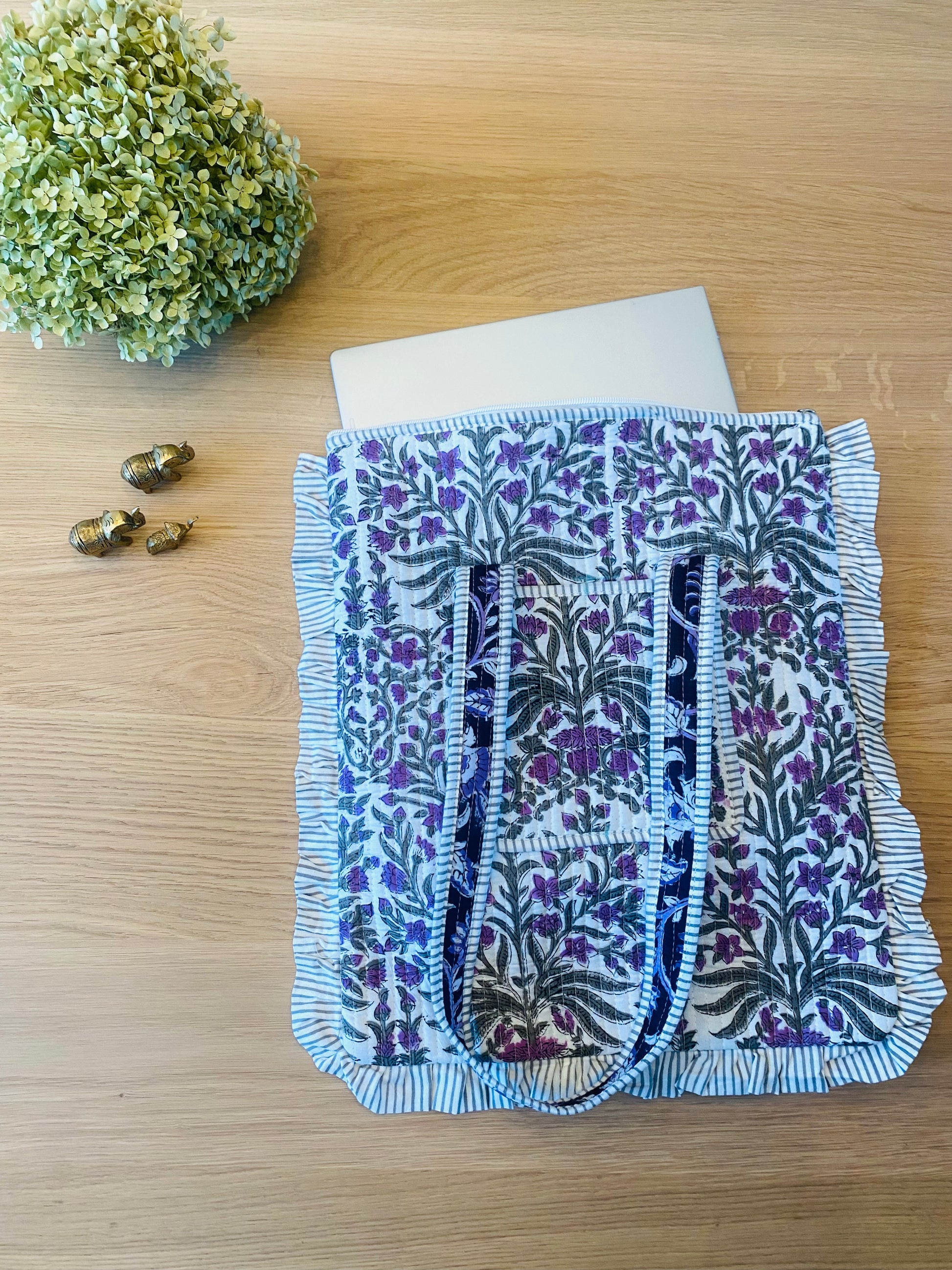 Deze mooie, gewatteerde laptoptas is handgemaakt en handbestempeld (block printed) in India. De tas heeft zowel een prachtige buitenkant als een mooie binnenkant én leuke franjes als rand. Ook ideaal als handtas.