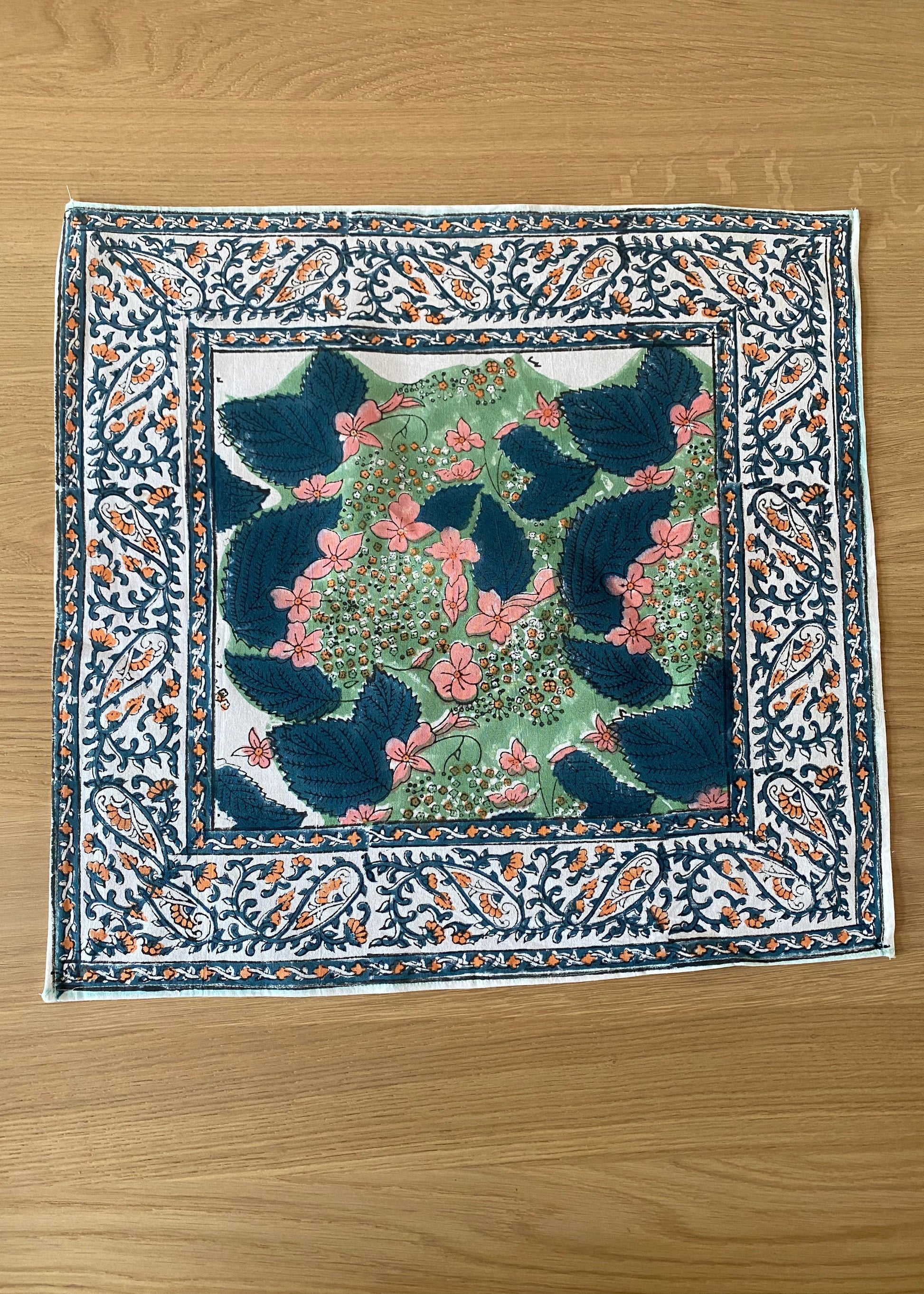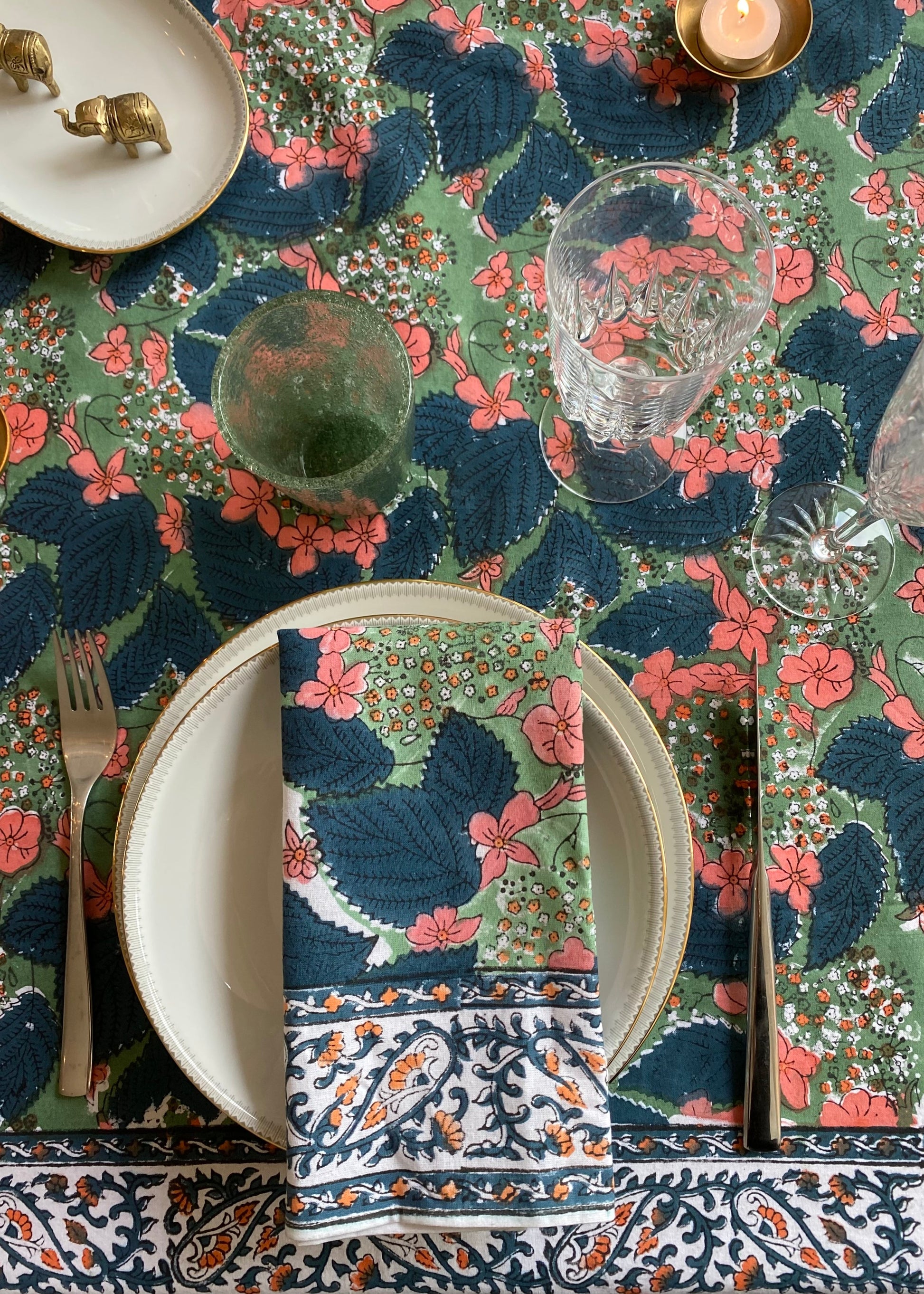 Onze blockprint tafelkleden worden met de hand gemaakt in een atelier in Jaipur, India. Deze eeuwenoude blockprinttechniek maakt gebruik van met de hand gegraveerde houten stempels om het patroon op de stof aan te brengen. Door dit ambachtelijke proces heeft elk tafelkleed zijn eigen unieke karakter.