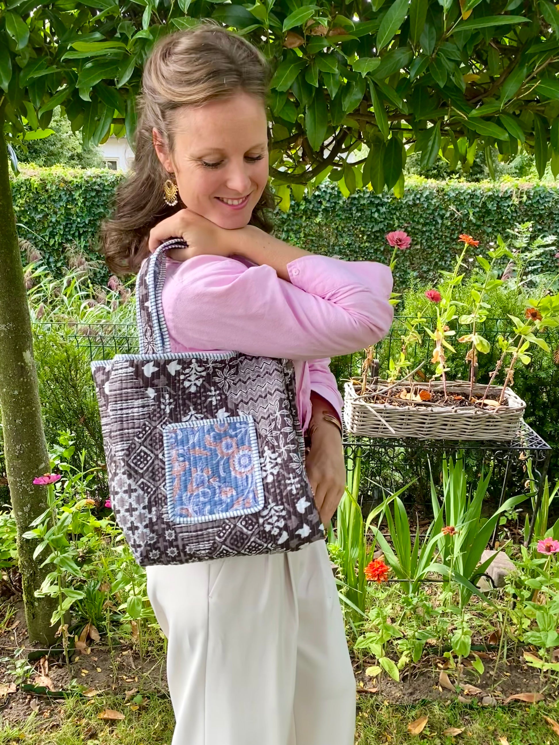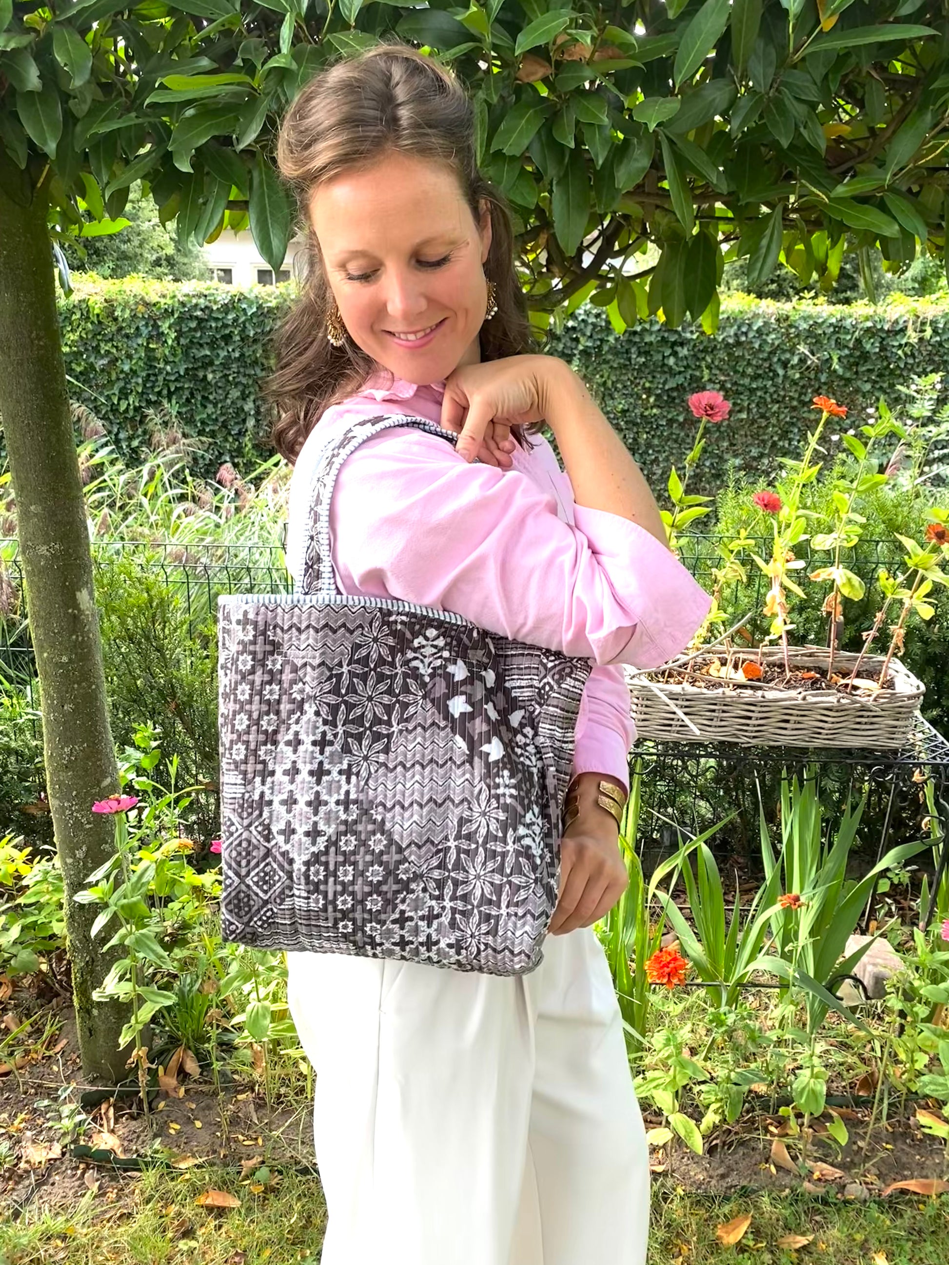 Het traditionele blockprint design maakt elke tas uniek. Een perfecte keuze voor iedereen die houdt van duurzame mode, natuurlijke materialen en authentiek handwerk.