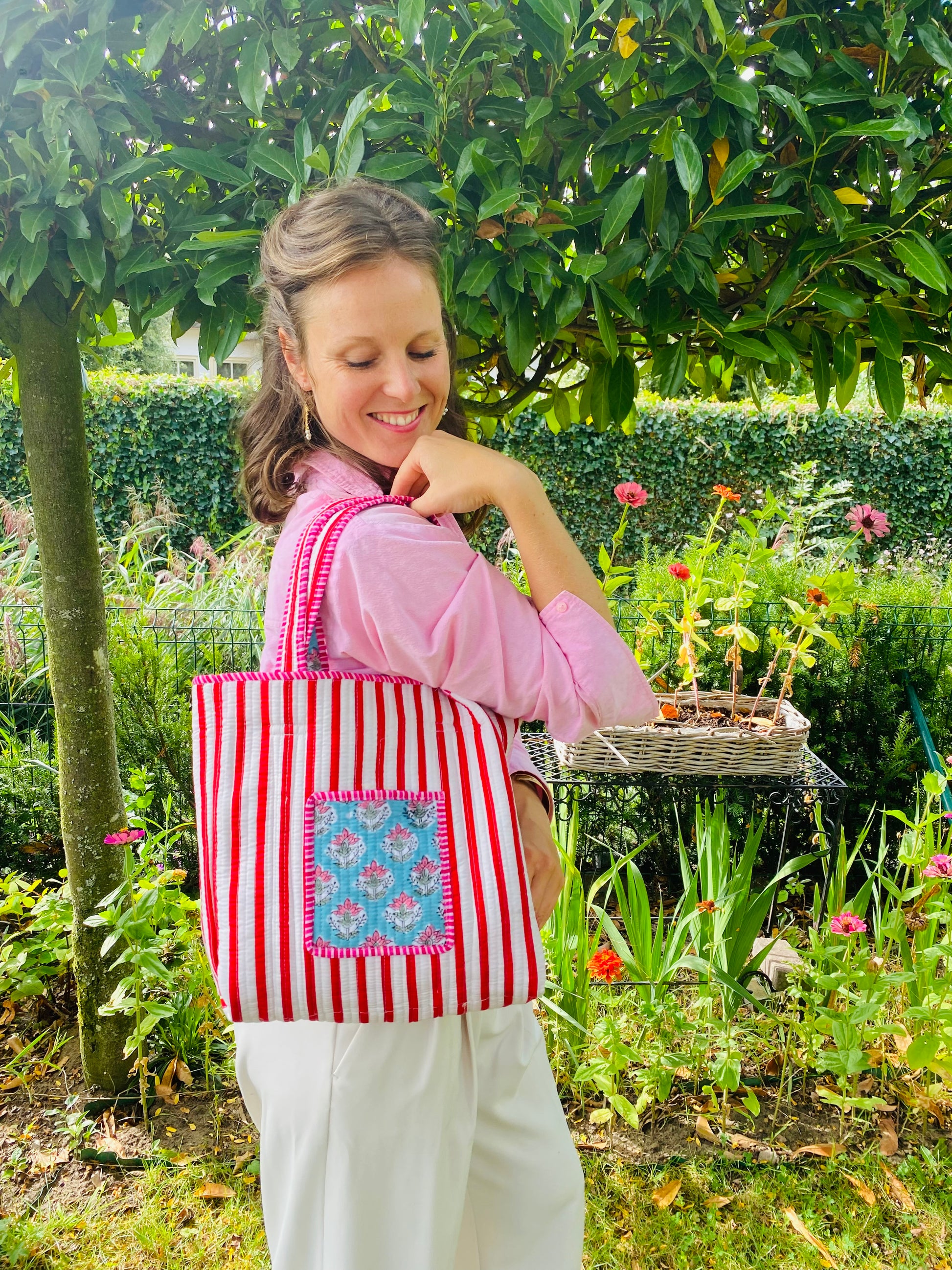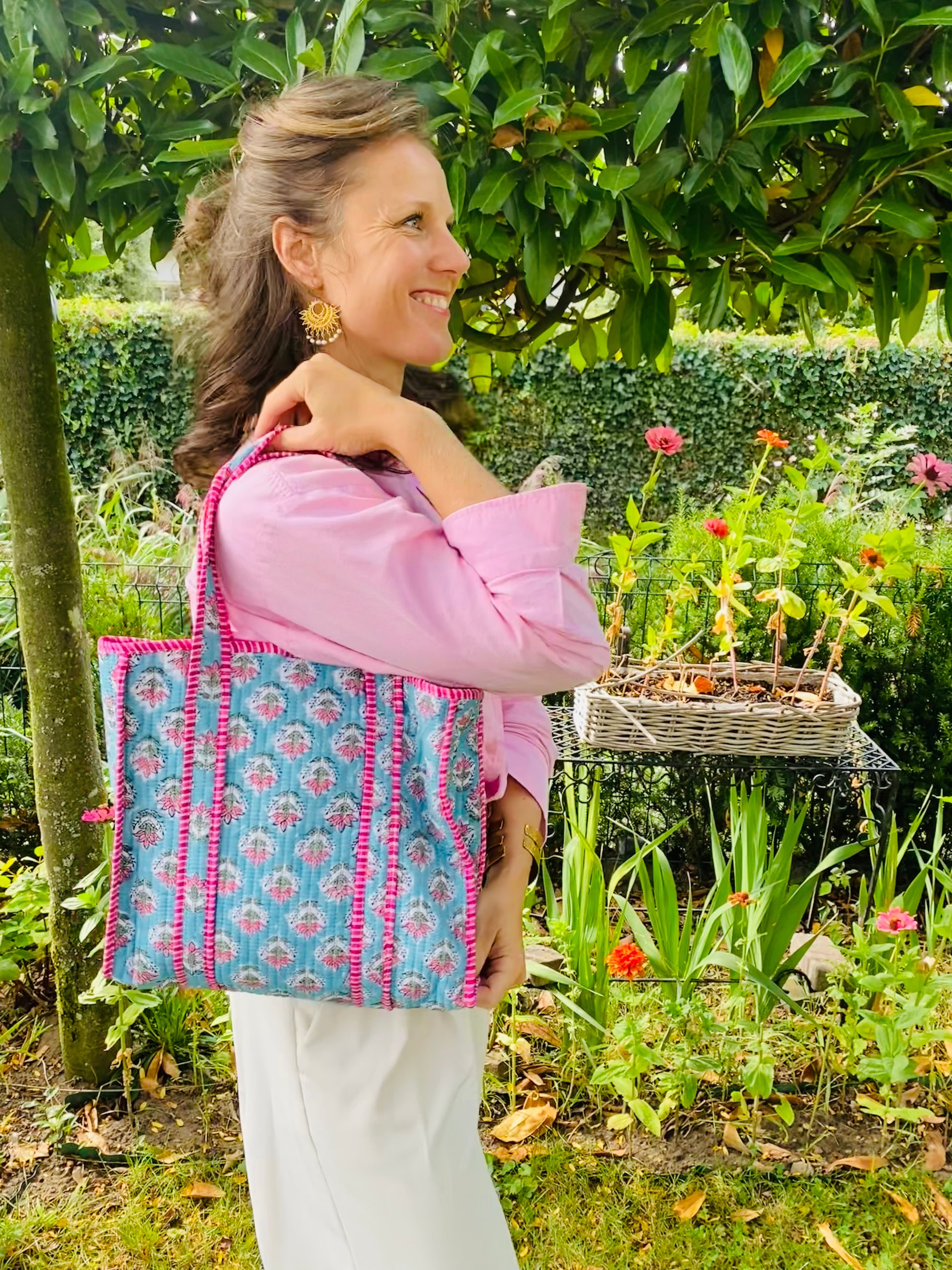 Het traditionele blockprint design maakt elke tas uniek. Een perfecte keuze voor iedereen die houdt van duurzame mode, natuurlijke materialen en authentiek handwerk.