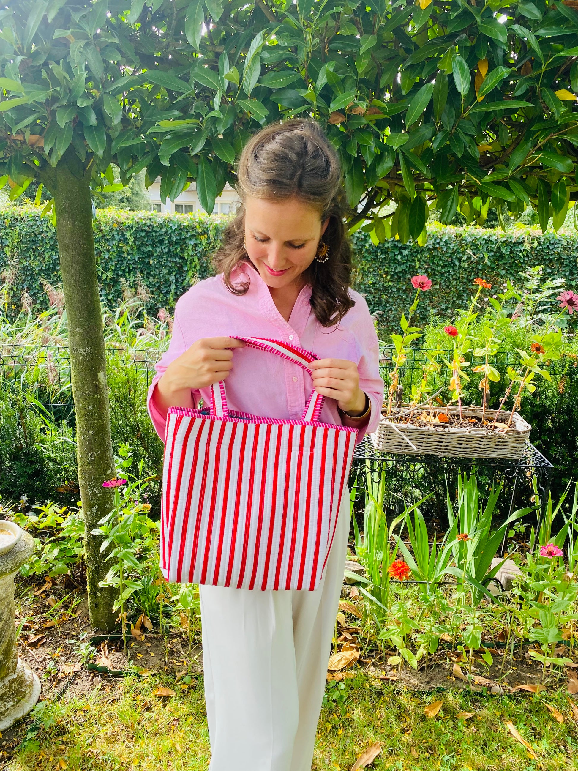Deze slow fashion handtas is gemaakt van 100% katoen en wordt op ambachtelijke wijze in India geproduceerd. Dankzij het lichtgewicht materiaal en het praktische formaat is de tas ideaal voor dagelijks gebruik: of je nu een boodschap gaat doen, naar je werk gaat of een dagje uit.