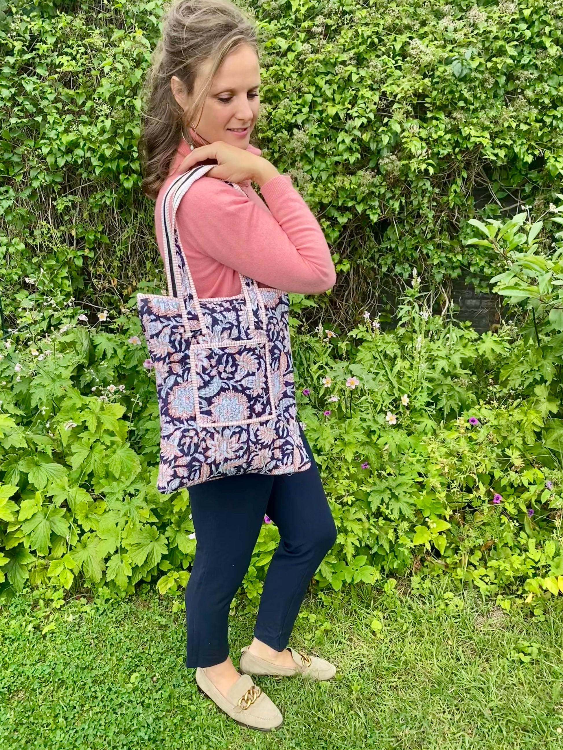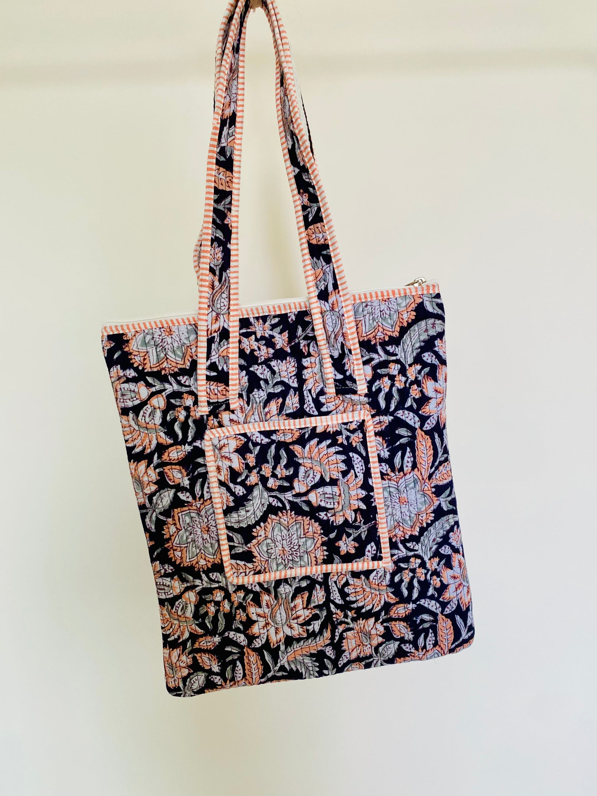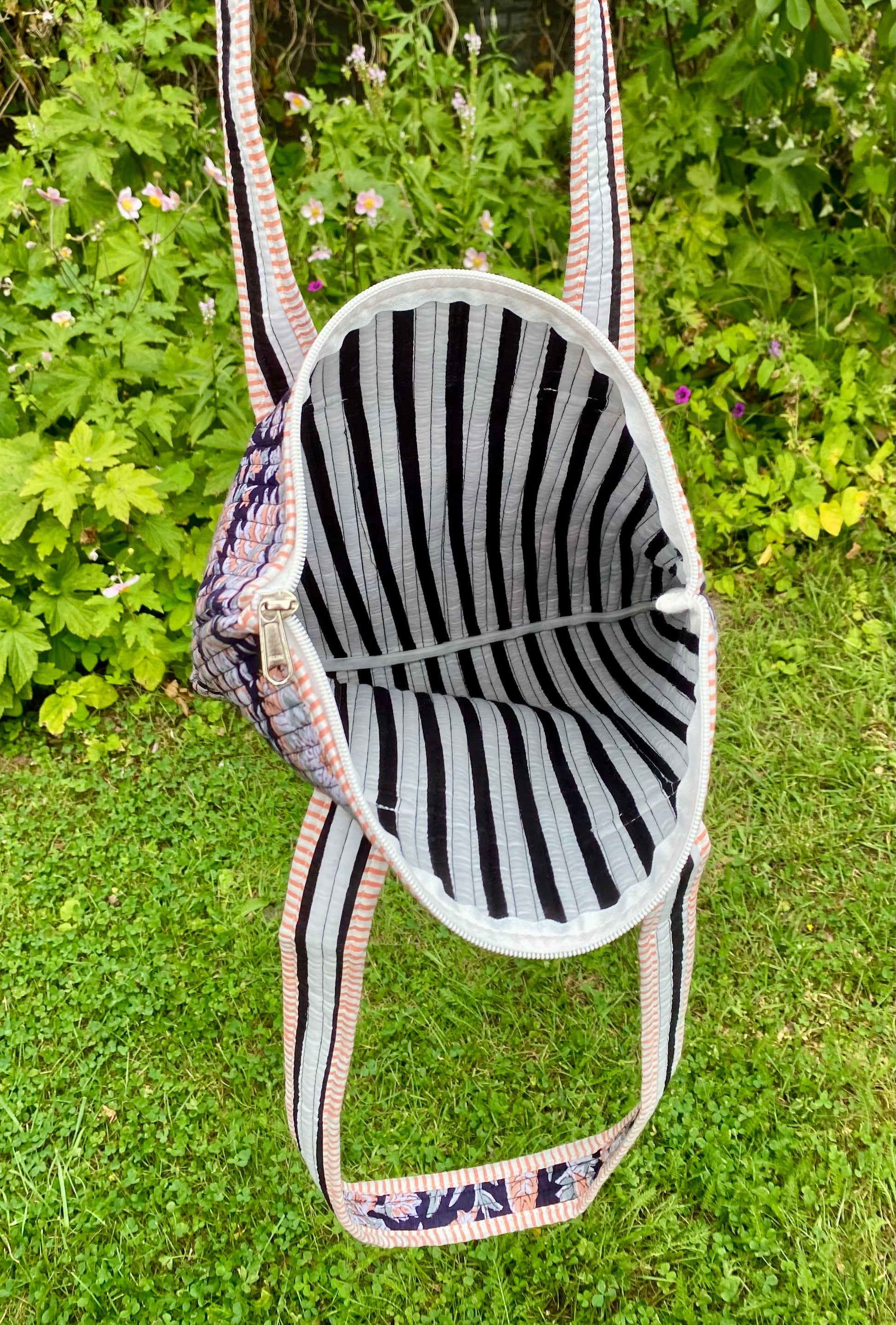 Deze mooie, gewatteerde laptoptas is handgemaakt en handbestempeld (block printed) in India. De tas heeft zowel een prachtige buitenkant als een mooie binnenkant. Ook ideaal als handtas!
