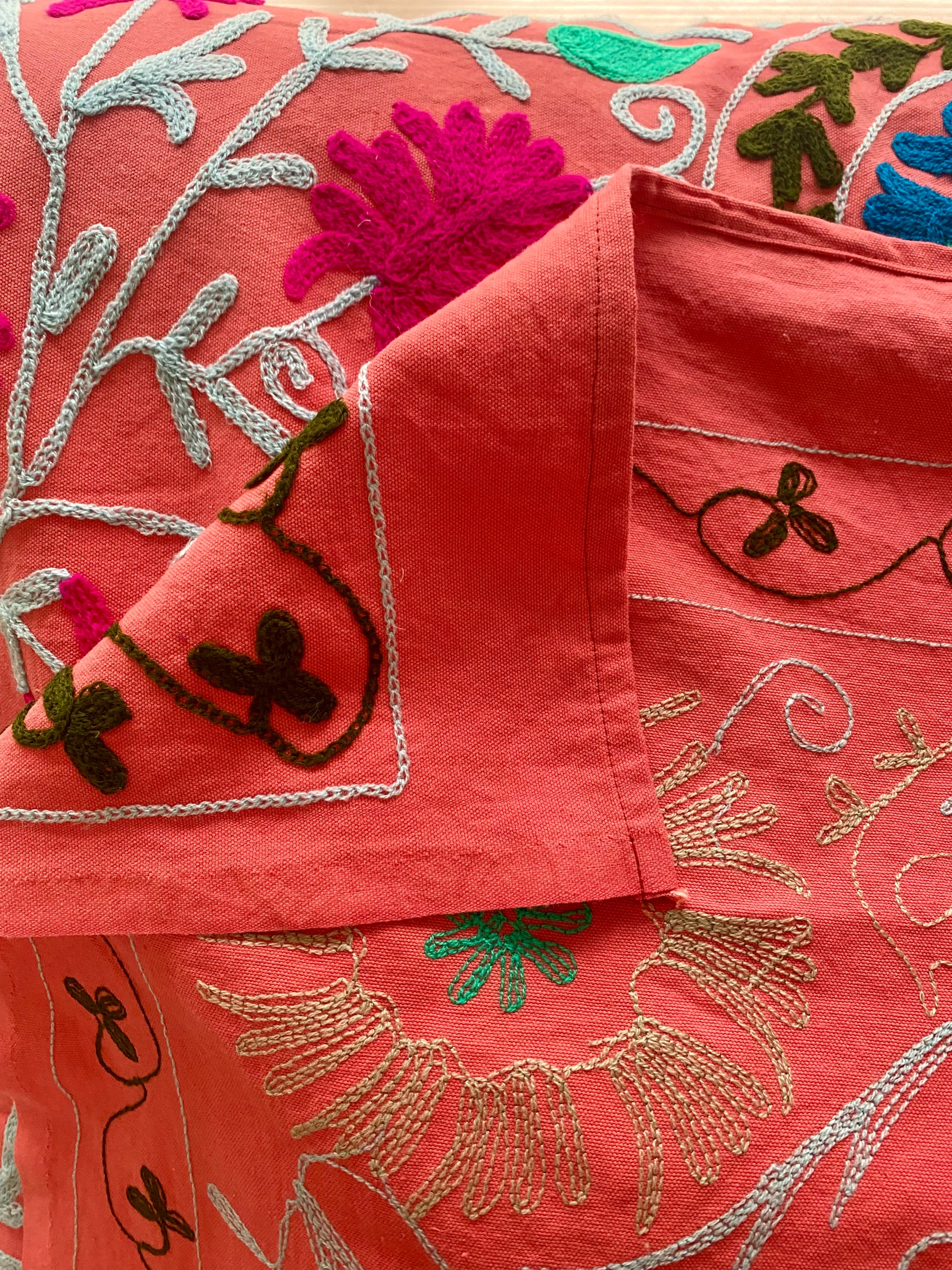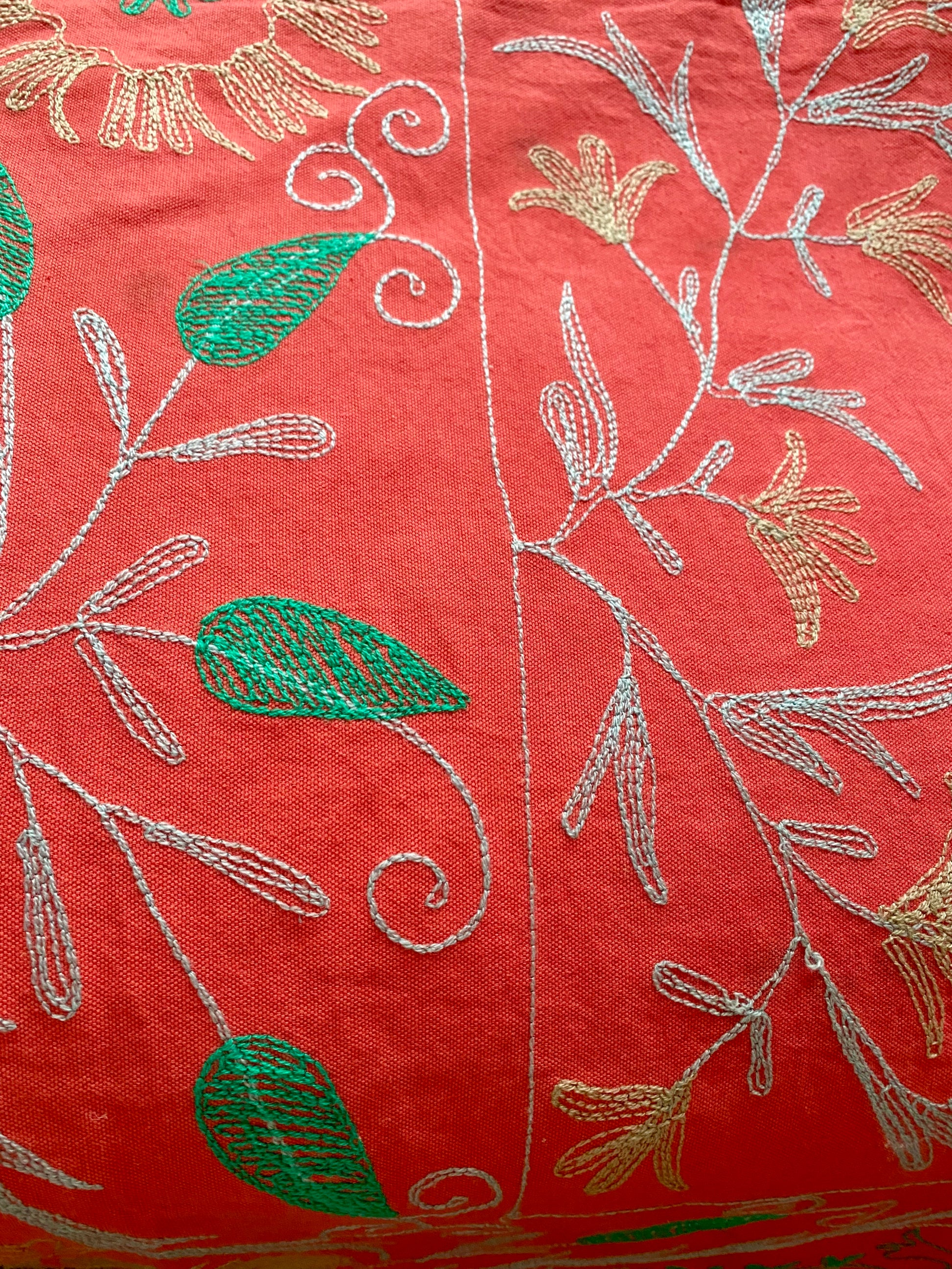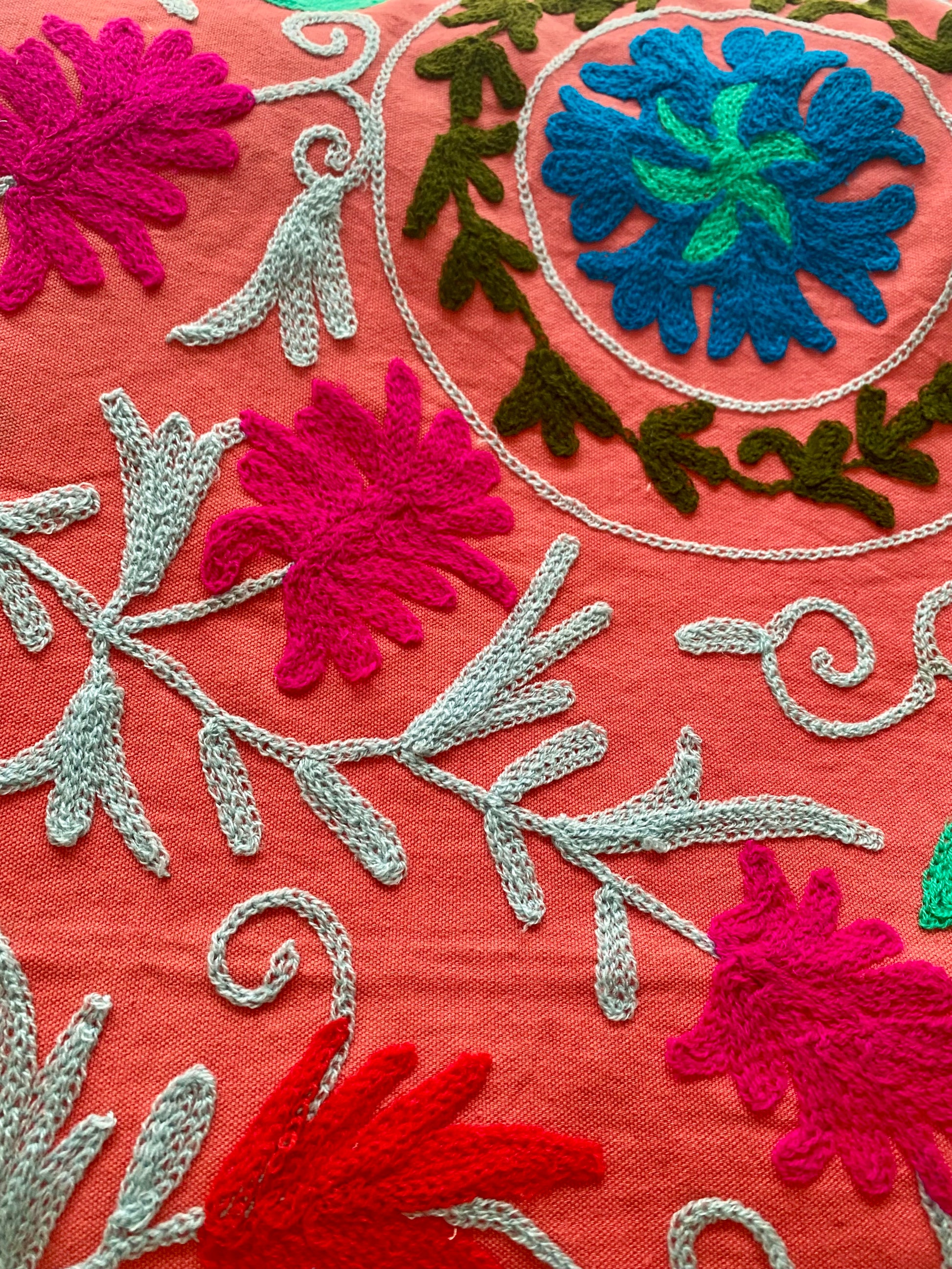 Gebruik het als sprei, deken, picknickkleed, strandkleed of speelkleed – het komt altijd van pas. De dieproze/rode granaatappelachtergrond met handgeborduurde bloemen maakt het tot een waar kunstwerk. Het kleed is aan beide kanten prachtig! En het mooiste? Dit is een item waar je heel lang plezier van gaat hebben vanwege de goede kwaliteit en het bijzondere, multifunctionele quilt.