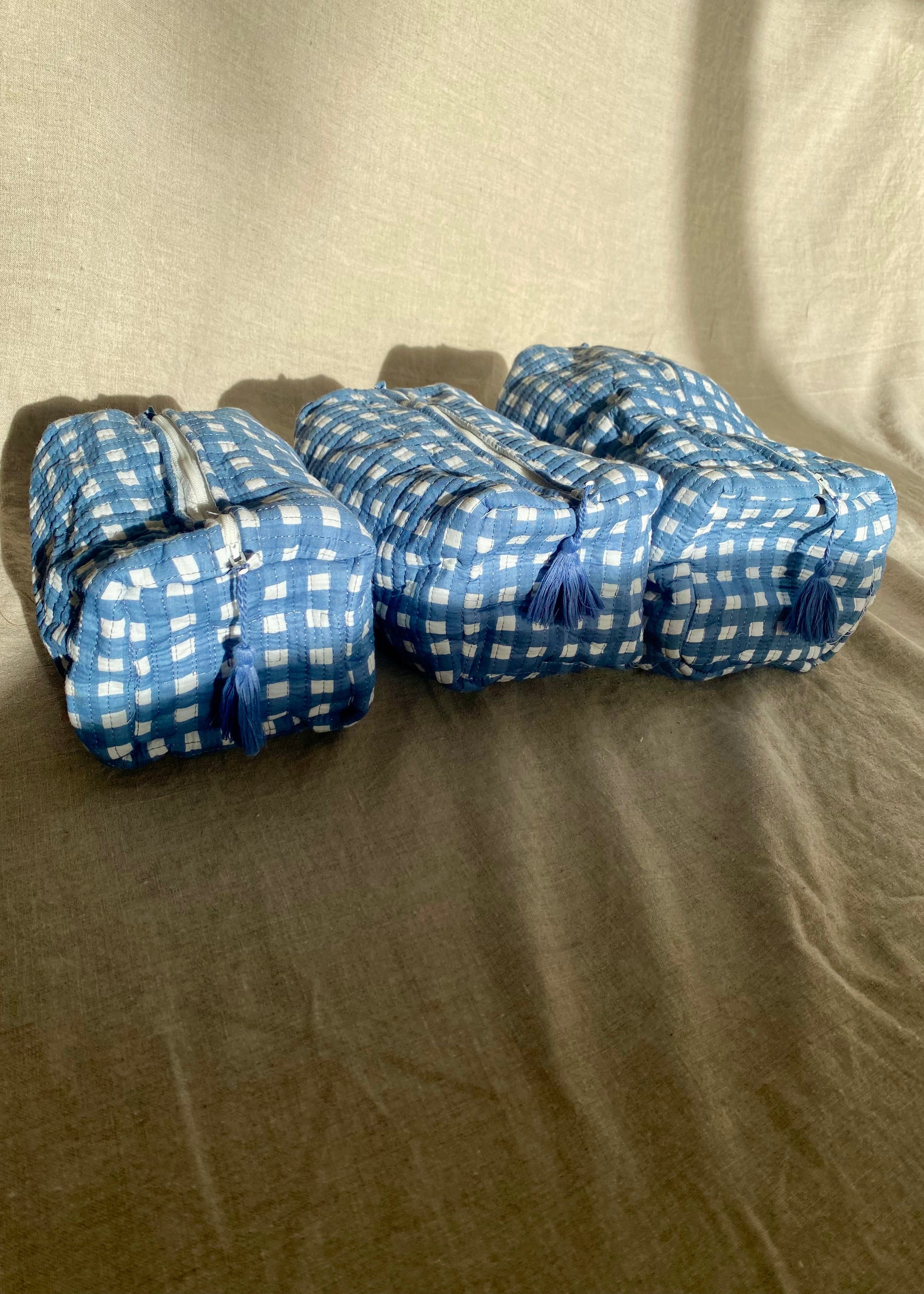 Elke block printed toilettas is met de hand bestempeld in een atelier in India, wat elke set uniek maakt. Gemaakt van 100% gewatteerd katoen, stevig van buiten en voorzien van vier handige binnenvakjes om al je essentials netjes te organiseren.